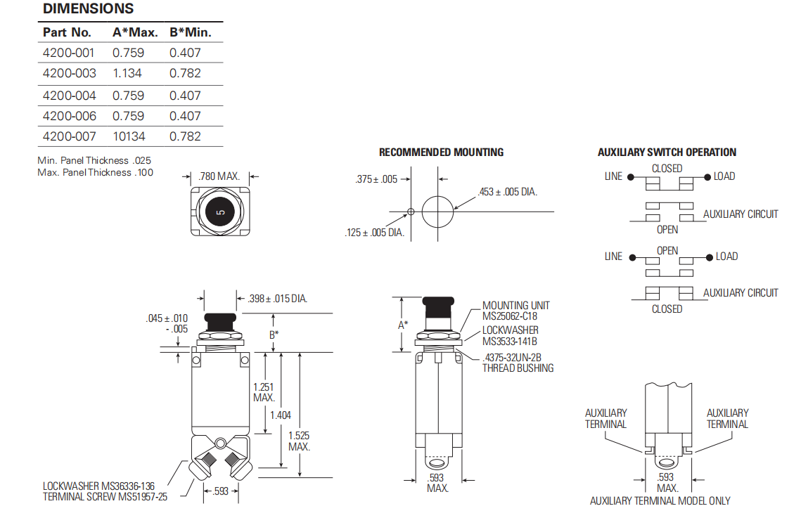沖擊、振動或潮濕。輔助開關和端子4200系列也可提供在輔助開關版本中4200-004)提供遠程跳閘狀態(tài)指示。在a中