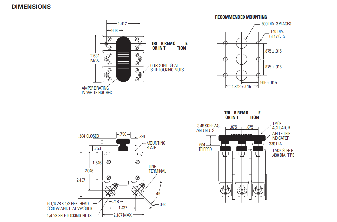 同時(shí)跳閘動(dòng)作的操作機(jī)構(gòu)。跳閘條為可拆卸以便安裝。性能額定電路斷路器