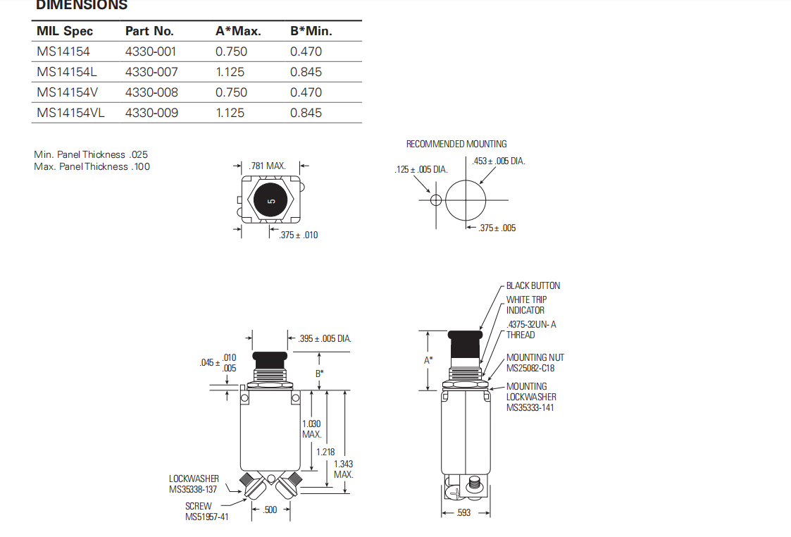 MS Approved 10 0.28 MS14154-10 4330-001-10 MS14154-10L 4330-007-10 MS14154-10V 4330-008-10 MS14154-10VL 4330-009-10
