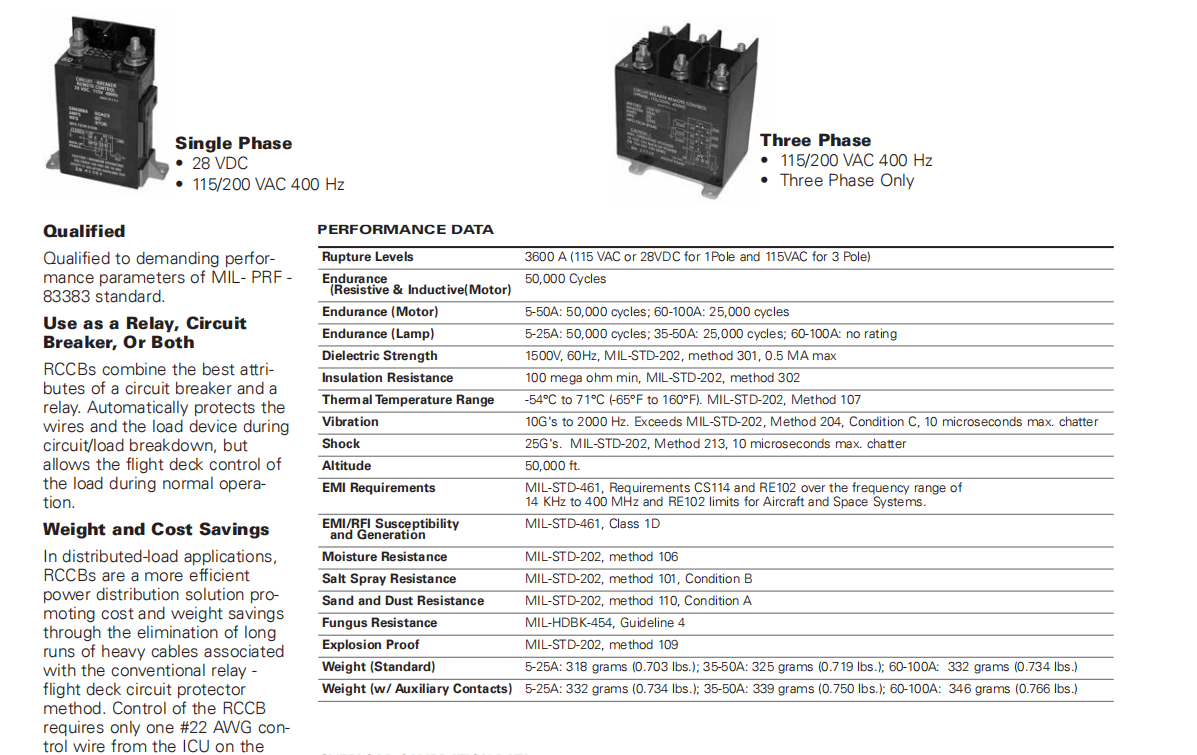符合MIL-PRF-83383標準。用作繼電器、電路斷路器或兩者RCCB結合了斷路器和轉發(fā)自動保護安裝過程中的電線和負載裝置