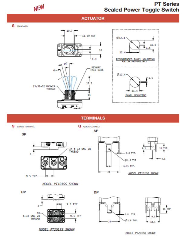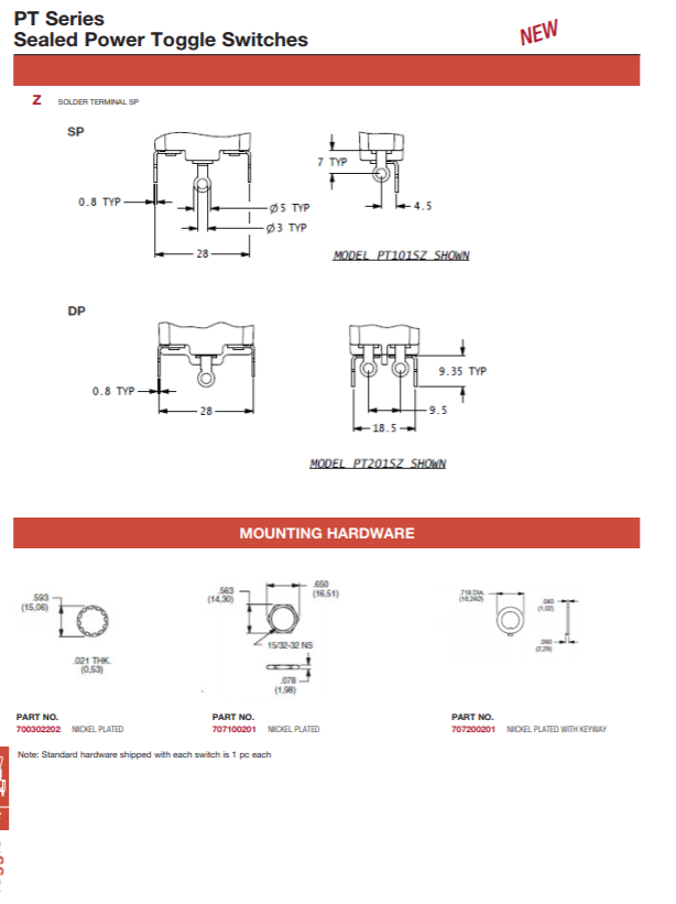 理想的堅(jiān)固,面板安裝,多功能開關(guān),用于苛刻,骯臟,灰塵,潮濕的條件下,C&K公司的PT系列密封電源開關(guān)與專利的單件注射成型面板和撥動(dòng)密封適用于越野建設(shè),農(nóng)業(yè),材料處理和工業(yè)設(shè)備的性能要求。PT密封電源開關(guān)有一個(gè)通用的IP 66/IP 68密封額定值,15安培的維護(hù)功能和10安培的瞬時(shí)功能,是IEC/UL 61058-1認(rèn)證。